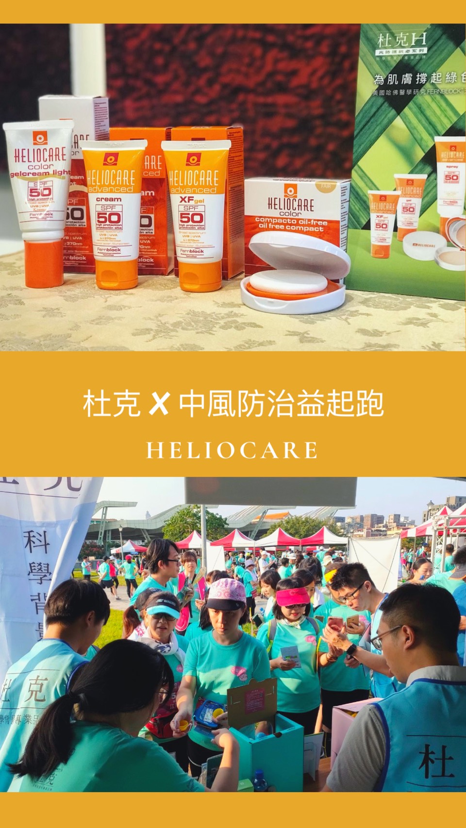 感謝大家熱情參與和支持。杜克這次參與公益路跑,近年來中風年齡層逐漸下降,想要追求健康生活必須從簡單運動做起,在世界中風日邀請大家一起跑起來!在路跑同時也別忘記擦防曬,防護熱情的陽光哦!活動熱情贊助杜克HELIOCARE光防護系列,具備哈佛醫學研究植物性成分的酚波克Fernblock®,清爽溫和質地,協助肌因修護,預防光老化!