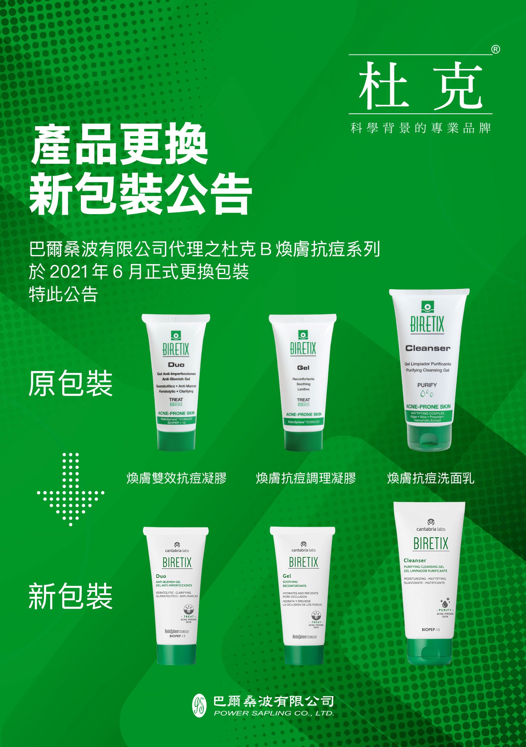 杜克B 煥膚抗痘系列 產品更換新包裝公告!